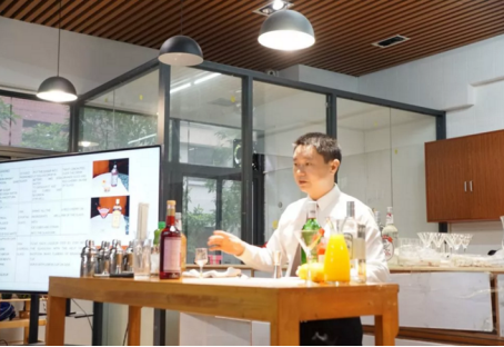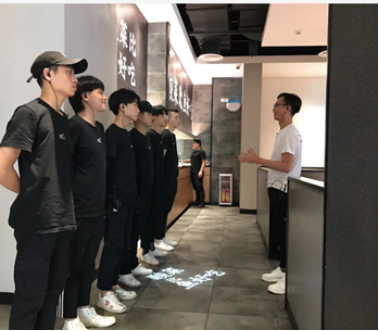 企业导师在校内旅游实训室进行餐饮管理课程实训