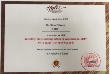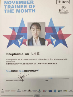 18级旅游管理学生在深圳会展中心希尔顿酒店获得优秀实习生荣誉