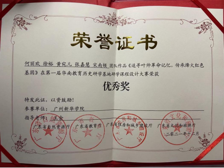 第一届华南教育历史研学 基地课程设计大赛优秀奖 |