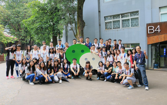 参观的第一站来到广州市海珠区TIT创意园(微信总部)。讲解员用其专业的知识为参观人员展示微信、QQ适用人群分布的星云图、公司获奖奖项及微信推出的纪念品等。展示过后讲解员为参观成员带来的是微信APP的更新历程及微信邮局,为同学们增长见识。在微信总部参观结束之时,全体参观人员与我们的日常使用工具来了一次最亲密的接触。