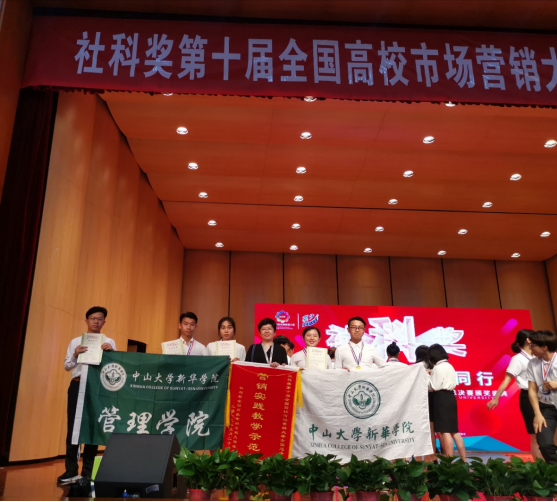 据悉,“社科奖”第十届大赛全国高校市场营销大赛历时11个月,覆盖31个省市、自治区,共吸引了全国278所高校1875支队伍参赛,最终遴选出102支参赛团队奔赴总决赛现场PK较量。作为中国大学生市场营销领域的年度盛事和展现舞台,大赛坚持以其独有的方式推动实践教学的改革和创新,在全国高校中享有良好的声誉和广泛的影响。我校首次参与这项比赛,面对来自全国各地经过初赛、复赛筛选出的队伍,我校“俗世奇人”团队入围全国总决赛,通过不断努力最终荣获全国总决赛本科组三等奖,中山大学新华学院也在本次大赛中荣获“营销实践教学示范奖”。此外,“火星”团队荣获营销策划案单项赛一等奖、“峰火”团队荣获营销策划案单项赛二等奖、“创客”团队荣获全国复赛三等奖。