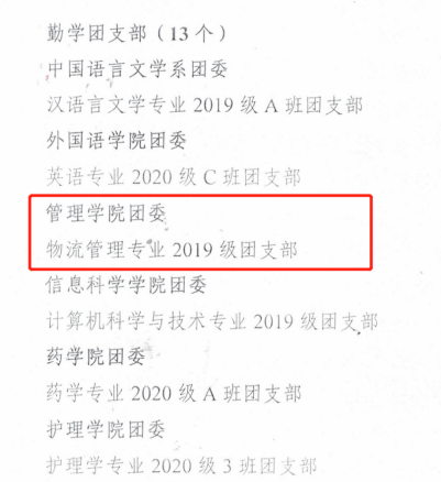 为表彰先进,树立榜样,我校团委在全校范围内开展了第十一季“青年大学习”网上主题团课先进集体和优秀个人的评选工作。最终经个人和团支部申报、suncitygroup太阳新城团委审核、校团委终审,我院物流管理专业2019级团支部荣获“勤学团支部”荣誉称号。