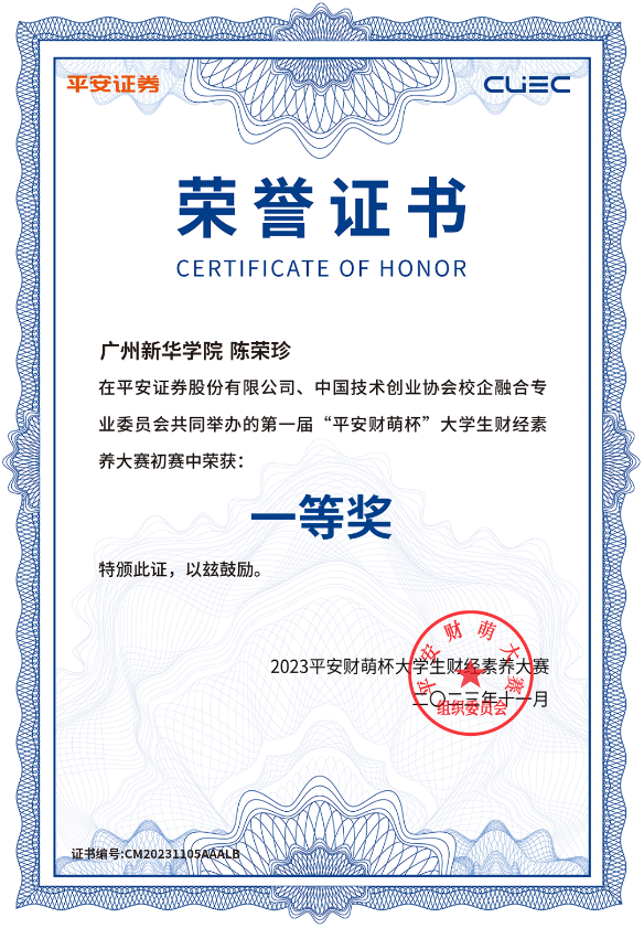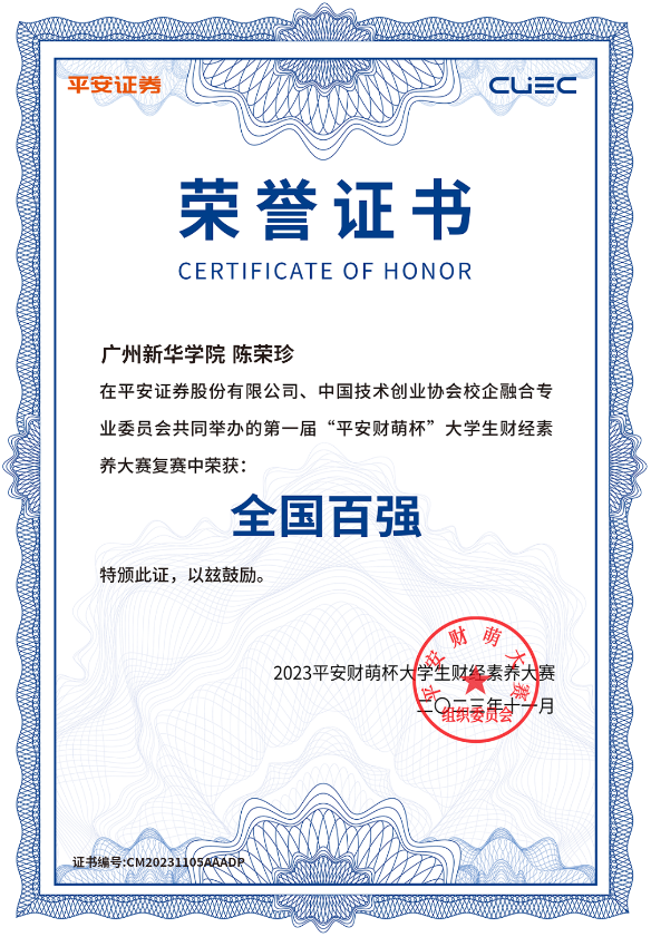 第一届“平安财萌杯”大学生财经素养大赛初赛一等奖、复赛全国百强