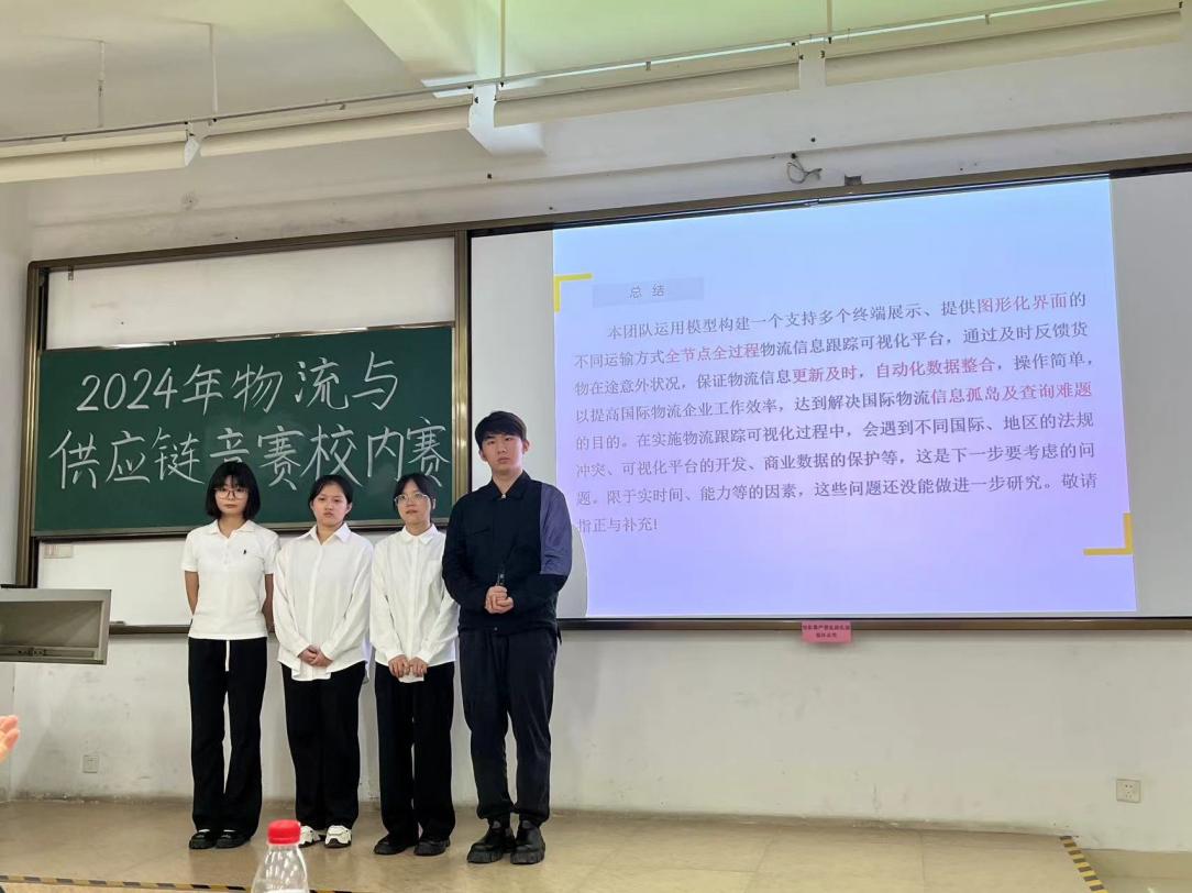黎佩铃在2024年全国高校物流与供应链竞赛校内选拔赛进行团队展示(右二)