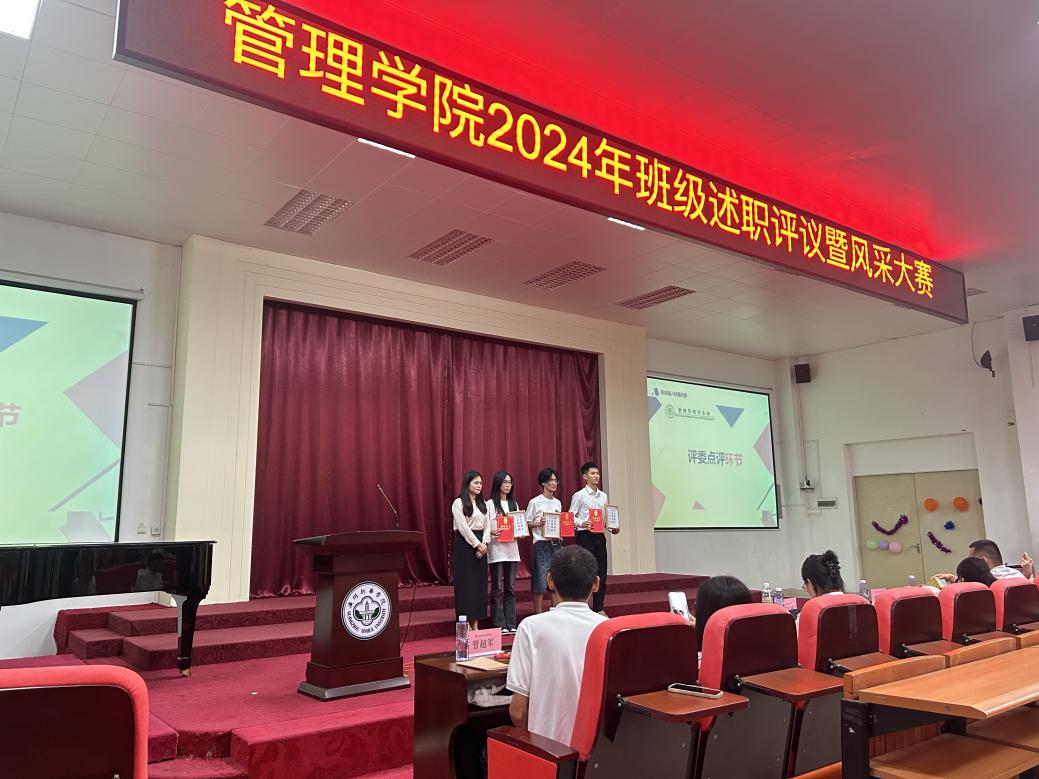 图二:作为班长在班级述职评议风采大赛上领奖(左二)
