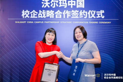 市场营销专业负责人杨宇帆副院长(右)参加沃尔玛校企合作高峰论坛
