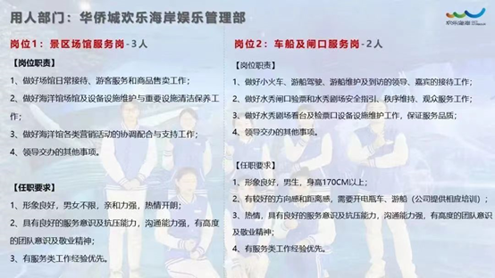 【就业招聘信息】深圳华侨城都市娱乐投资公司-前厅礼宾岗、餐饮服务岗、景区场馆服务岗、车船及闸口服务岗