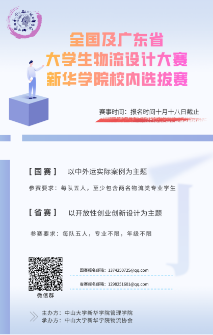 1. 参赛对象:中山大学新华学院正式录取的全日制物流类及相关专业(文理工含专插本)本科在校生。