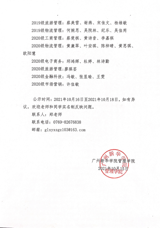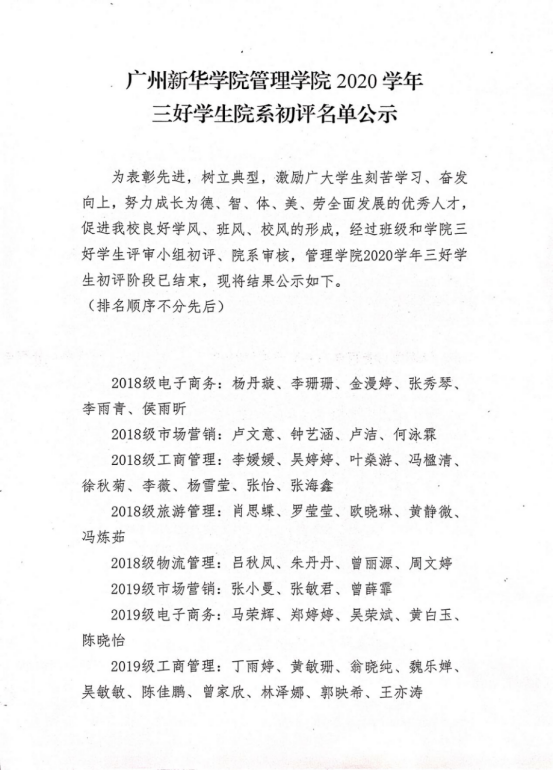 广州新华学院suncitygroup太阳新城2020学年三好学生初评公示