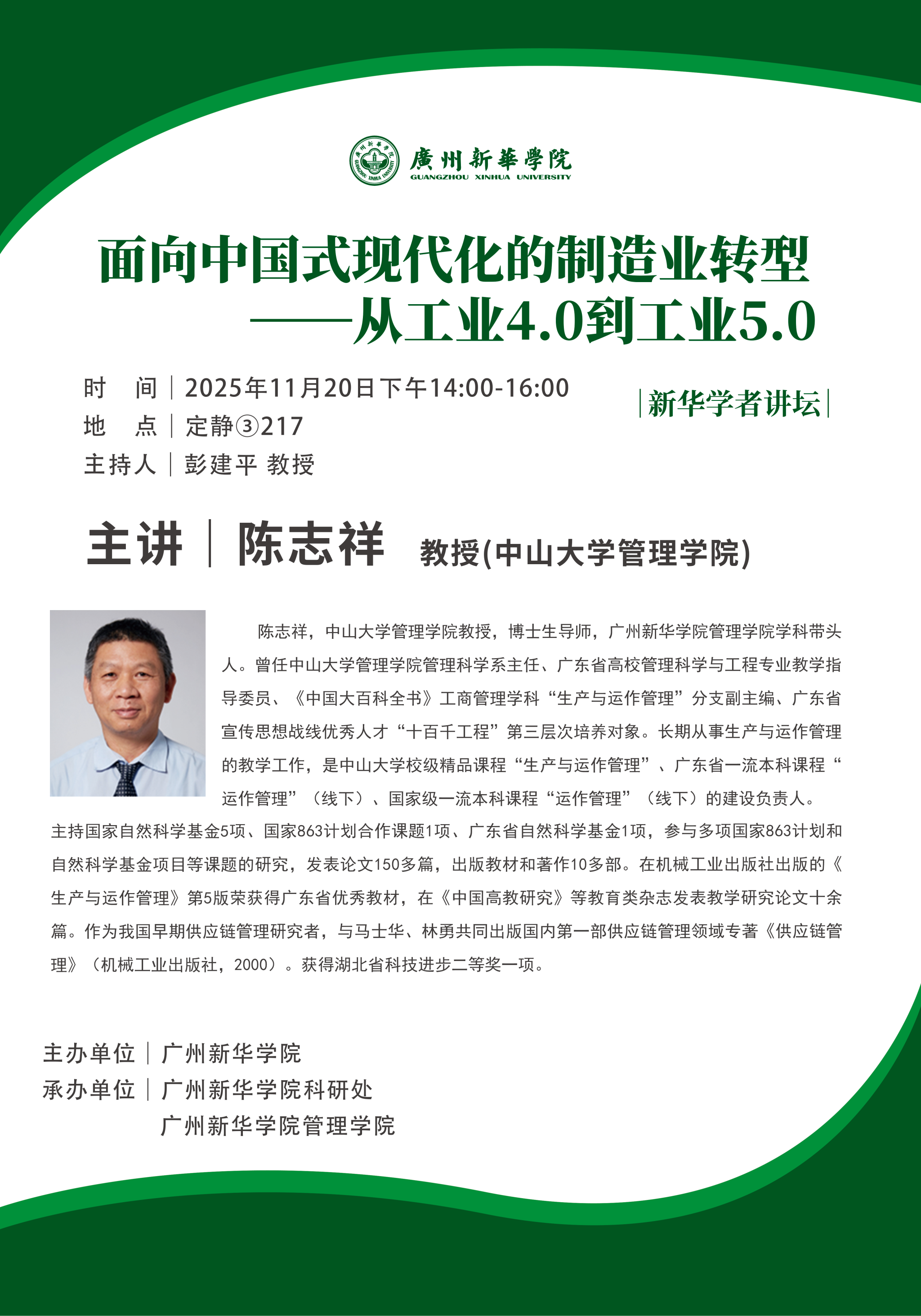 讲座预告|陈志祥教授:面向中国式现代化的制造业转型——从工业4.0到工业5.0
