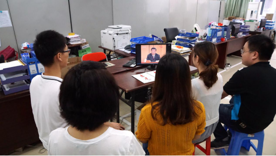 suncitygroup太阳新城青年教师在办公室观看五四运动100周年大会直播