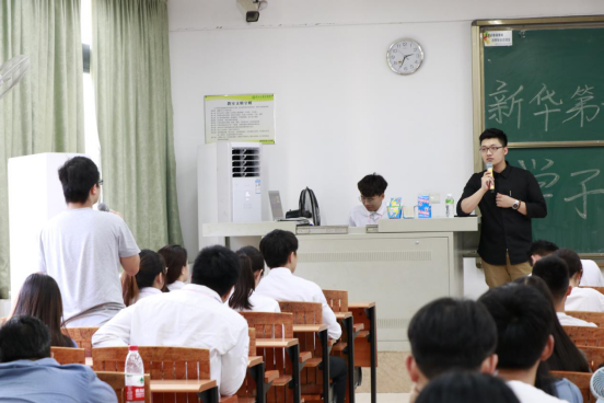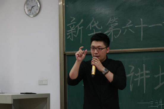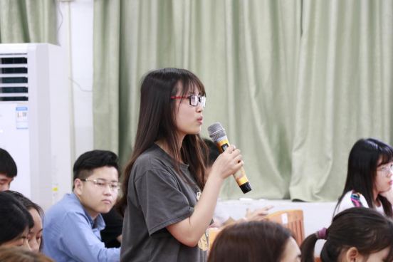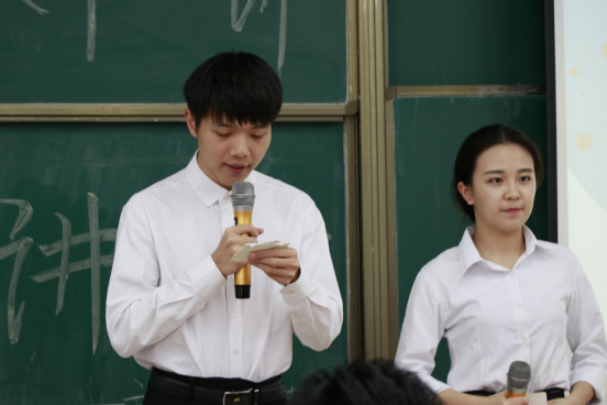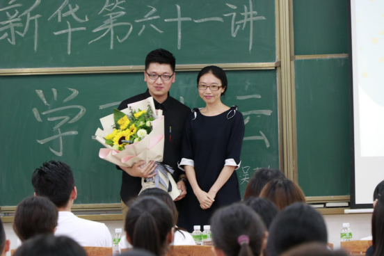 其次,吴嘉华校友列举了中央电视台主持人白岩松老师的例子,引出他的第二个观点:“用更高的标准,提前准备,这样才可以让自己脱颖而出”。随后,吴校友通过小白鼠实验和同学们进行了生动有趣的互动并在这一过程中送出礼物,将氛围推向高潮。在互动环节中,吴嘉华校友说出第三个观点:“人都需要被认可”。随后,同学们向吴嘉华校友进行了提问,吴嘉华校友一一回答了同学们的问题。最后,廖诗颖老师给吴嘉华校友送上了鲜花,大家进行合影留念。至此,讲座在同学们热烈的掌声中圆满结束。
