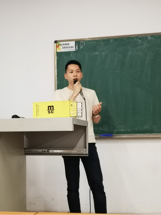 最后,弘源昌业务一部的陈俊博经理用自身的例子与同学们分享了如何成为一名优秀的物流业务(销售)人员,并告诉同学们,成功业务人员的两个必备条件就是要树立明确的目标和培养正确的价值观,同时他还讲解了(销售)业务方面的一些实操技术。