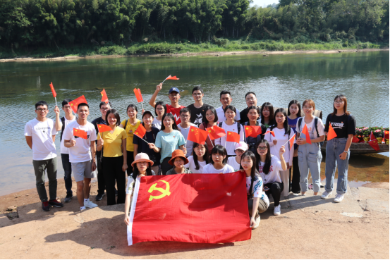党员同志在三星坪码头高喊“中山大学新华学院祝伟大祖国繁荣昌盛”
