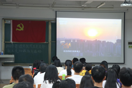 党的知识学习是新生入学教育的重要组成部分,是新生树立正确的世界观、人生观、价值观的一课,也是贯彻好“三早”,即早启蒙、早教育、早培养的重要途经。为进一步推动我院学生党员的发展工作,suncitygroup太阳新城学生党支部于2019年10月17日晚上7点在定静1A302举行了党的知识新生教育活动。出席此次活动的人员包括suncitygroup太阳新城学生党支部书记凌晓婵、新生辅导员代表罗志军以及学生党员代表。
