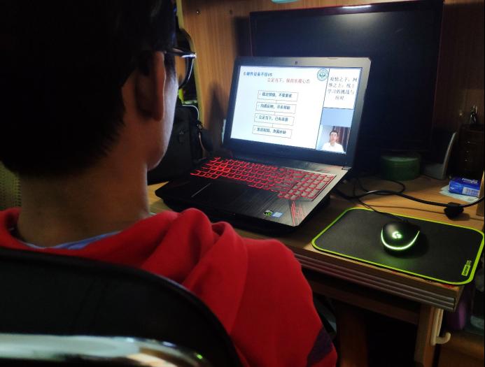 物流管理专业陈昕沅同学认真观看录播视频