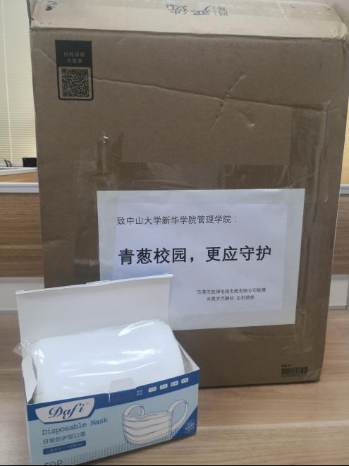 疫情无情人有情,爱心企业助战“疫”。5月4日下午,中山大学新华学院管理学院(以下简称“学院”)职业导师--东莞市胜牌电线电缆有限公司CEO颜宏忠先生,代表公司向学院无偿捐赠防护口罩1000个,支持学院疫情防控和开学筹备工作。