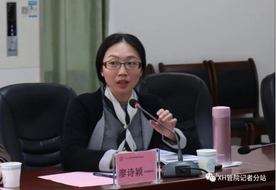 廖诗颖党支部副书记对党建工作进行总结,对于学生工作,党总支采取求稳,稳重推进的方式。积极落实党委的重大部署,继续深化教育成果。同时,关于疫情,坚守阵地,牢固防线,多措并举,做好学生疫情防控工作。