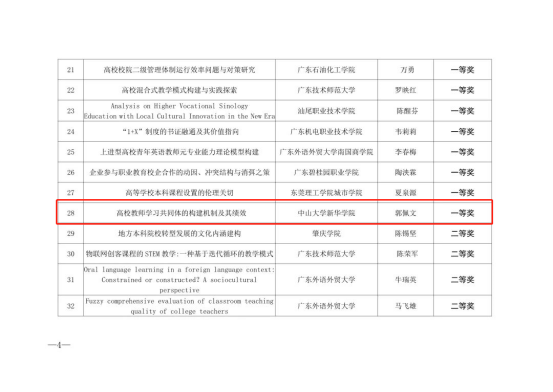 图片来源:《关于公布广东省高等教育学会第一届优秀高等教育研究成果奖获奖名单的函》