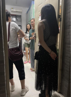 左上:肖美艳老师走访学生宿舍;右上:唐慧敏老师走访学生宿舍;
