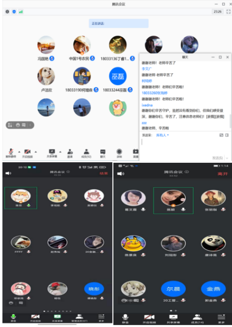 上:辅导员罗志军老师和级导师冯国艳老师、肖美艳老师通过腾讯会议进行感恩和担当教育;
