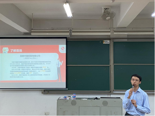 (图二:百胜广东区域人力资源部负责人进行企业介绍)
