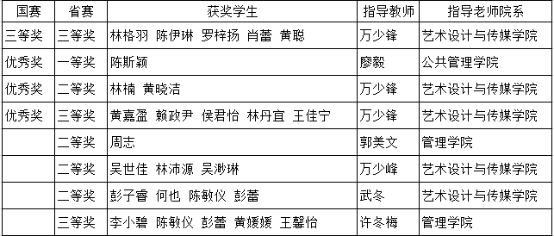 我校大广赛国赛、省赛获奖明细表