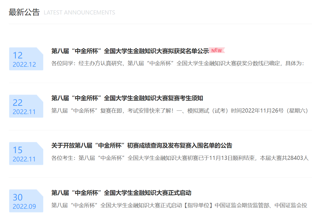 自2014年以来,“中金所杯”已经连续举办七届,覆盖参赛高校数量达1230余所,参赛对象:中国内地及港澳台、北美、欧洲等地区高等院校全日制在校学生,包括专科、本科以及研究生(硕士/博士),累计参赛学生逾23.3万人次,实现了双一流大学及财经类院校全覆盖;“中金所杯”的持续举办,得到了广大高校及参赛学生的一致好评,形成了金融知识普及、金融学科建设、金融人才培养、推动金融国民教育的良性互动,已逐步成为高校及在校大学生密切关注的金融学科顶级品牌赛事。