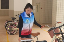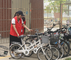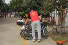 图13-18教师党员对自行车进行有序摆放