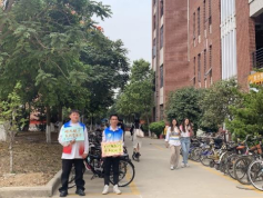 活动过程中,党员同志们在上下课及用餐时间等人流高峰期,手举宣传标语,值守21栋学生宿舍门口、新饭堂四周,对现场发现的不文明停车行为进行劝导,并提醒准备骑行的学生在到达目的地后文明停车,遵守停车规范。