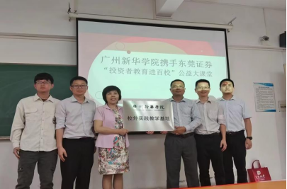 东莞证券万江营业部副总经理周伟林介绍了东莞证券股份有限公司的基本情况,作为东莞地区国有控股的全国性综合类证券公司,东莞证券积极承担社会责任,建立了投资者教育基地,积极开展校企合作,期待与新华学院合作共同培养优秀的金融人才。