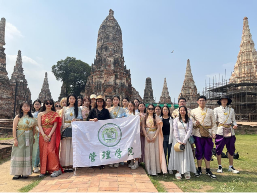 在泰国巴吞他尼大学的课堂上,老师为大家讲解了泰国四个地区(中部、南部、北部及东北部)丰富多彩的饮食文化与传统习俗,让同学们充分感受到了泰国的独特魅力。之后,老师通过带领同学们去参观了遗址、大皇宫、水上市场等,为同学们介绍了泰国不同类型的旅游资源和旅游业管理知识,并通过布置小组任务的方式让同学们将所学到的知识运用到实际中。