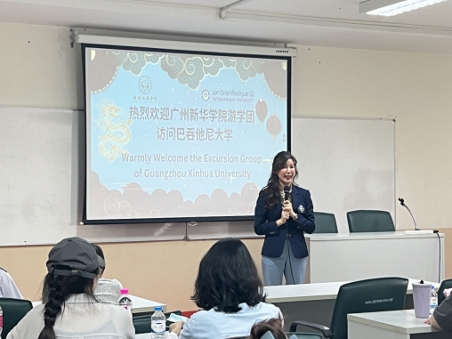 泰国巴吞他尼大学副校长 Nithima 博士就我校师生的到访表示热烈欢迎,她并介绍了泰国巴吞他尼大学丰富多彩的语言学习及文化体验活动安排及注意事项,希望同学们通过丰富的学习任务和体验活动,从经济、文化、社会、历史等多个方面感受泰国、了解泰国,在实践中探寻泰国文化的智慧与魅力。