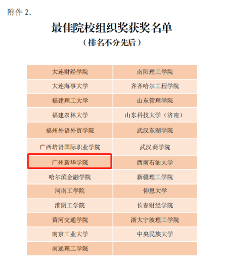 图2:广州新华学院获得最佳院校组织奖