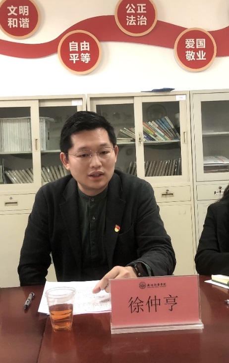 最后,学校党委委员、招生办公室主任徐仲亨同志对做好学院2025年的基层党建工作提出两点要求。一是要深入开展理论学习,加强学习主动性、创新学习形式,以习近平新时代中国特色社会主义思想武装头脑、指导实践、推动工作。二是要持续推进党建与业务双融双促,在迎评促建工作中进一步发挥思想引领和加强学风建设,以高质量党建引领高质量发展。