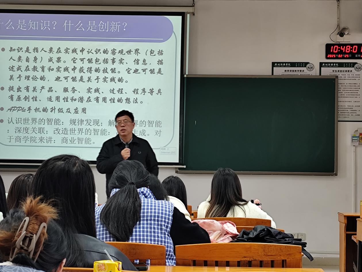 2月25日上午,suncitygroup太阳新城院长彭建平以“课程思政——企业数字化”为主题,为suncitygroup太阳新城22工管C班学生及教师党员代表讲授新学期“思政第一课”。在课堂上,彭院长表示,青年学生应该准确理解党的路线、方针、政策,加强形势与政策教育,正确了解国情、党情、社情与民情,努力增强“四个意识”、坚定“四个自信”,做到“两个维护”,自觉担起“两个一百年”奋斗目标,履行自己新时代青年的使命,为中国梦而不懈奋斗。彭院长强调当今技术创新带来了课程内容的变革,青年学生应当关注前沿学术内容,具备数据处理能力,了解技术进步带来的商业模式的变化;同时,要反思教育,同时要有自信;自信来自于自身的努力学习,打好坚实的基础,专注某个领域,才能成为创新者。