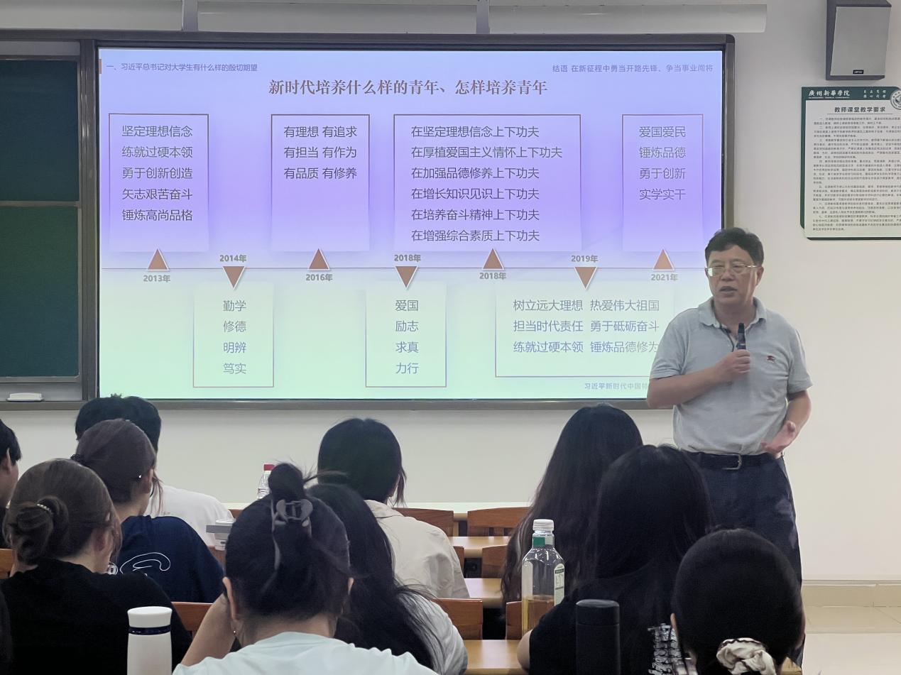 课程开始,彭建平院长首先带领师生深入学习了习近平总书记在各地学校的重要讲话和关于青年工作的重要论述。他指出,总书记始终高度关心青年学生的成长成才,多次寄语广大青年要坚定理想信念、练就过硬本领、勇于创新创造、矢志艰苦奋斗、锤炼高尚品格。彭院长强调,立足新时代新征程,中国青年的奋斗目标和前行方向归结到一点,就是坚定不移听党话、跟党走,努力成长为堪当民族复兴重任的时代新人。