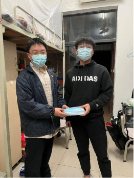 面对热情的学生党员们,同学们也积极提出了关于学习生活等方面的问题,党员们结合自身经历耐心细致地为同学们答疑解惑。同时,学生党员们也为同学们送上防疫物资,叮嘱大家要做好防护措施。