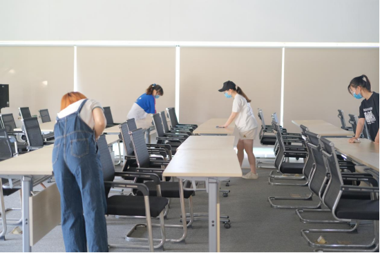 活动开始前,支部成员们带着清洁工具在创意园集合,并进行简单的任务分工与合作,随后投入到清洁活动中。活动过程中,支部成员们抱着细致入微、热情洋溢的工作态度对自习室进行全面的整洁,擦黑板、扫地、拖地、整理桌椅,在炽热阳光的照耀下,他们的服务精神熠熠生辉。即使汗流浃背,他们也毫无怨言地对每一张桌椅、每一处地板进行打理,不放过任何细小的角落,努力给广大学子营造一个舒适的学习氛围。经过一个多小时的清洁,整个自习室焕然一新,让人心旷神怡。活动末尾,全体人员进行合影留念。