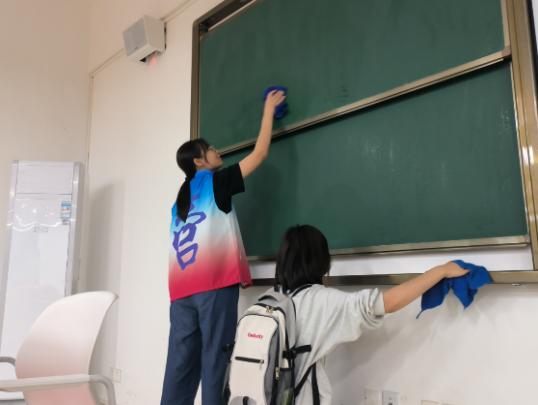 培训以理论与实践、线上与线下相结合方式展开,正值我校18周年校庆之际,我院积极分子学员们积极开展志愿服务,以小组合作的形式开展教室清扫活动。将党的光荣传统和优良作风转化为办实事的动力和热情,投身校园文明实践工作,通过劳动实践强化服务意识、增强使命担当。