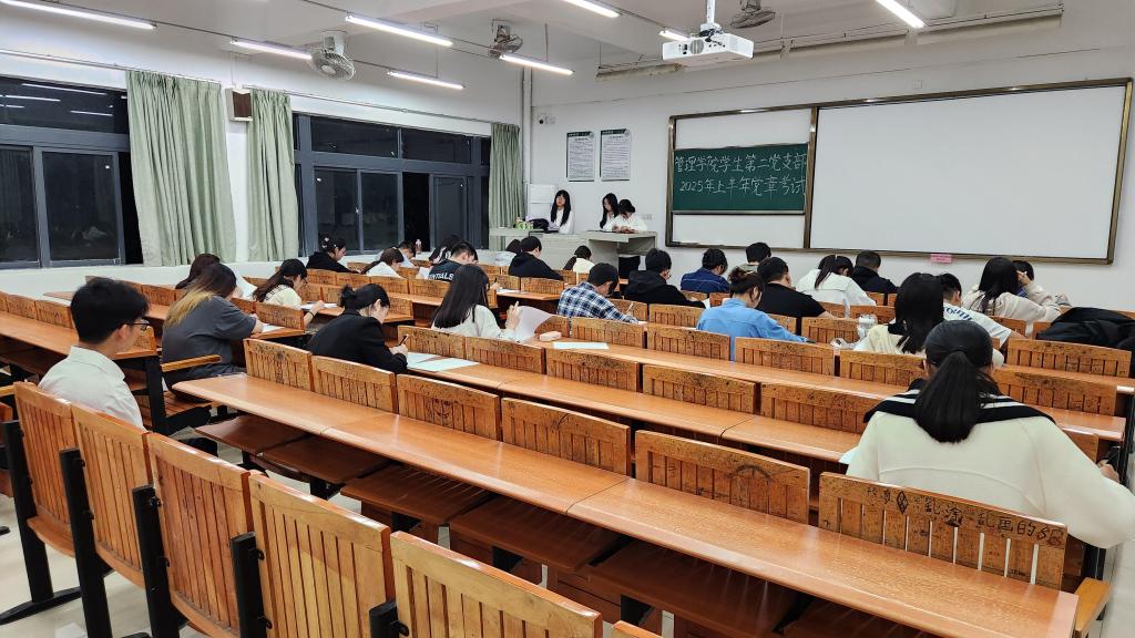 在新时代的征程上,中国共产党始终把党的建设新的伟大工程摆在重要位置。《中国共产党章程》是党的总章程,是党的根本大法,是全党必须遵循的总规矩。为进一步加强党的建设,增强同学们的党性修养,suncitygroup太阳新城学生第二党支部于2025年3月4日晚上7点在定静1C203教室开展2025年上半年党章考试工作。
